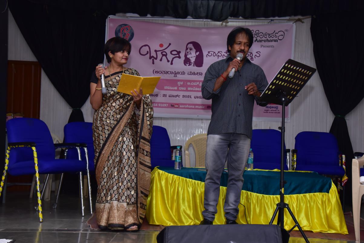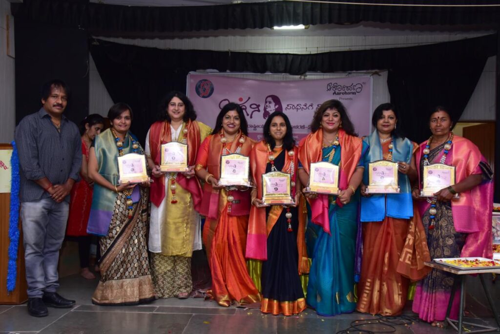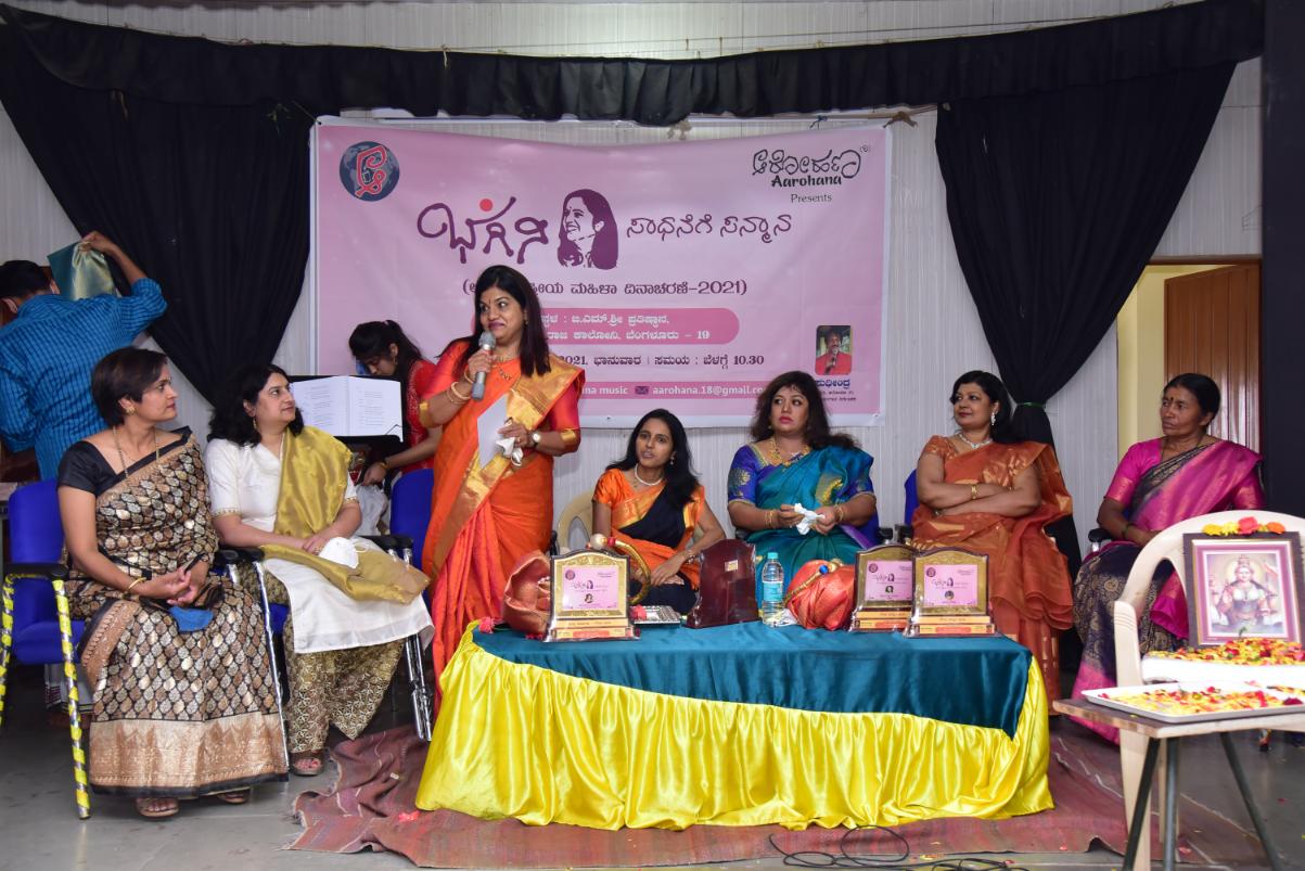 “Bhagini – 2021” : As part of the International Women’s Day, Aarohana organization started the program “Bhagini – Sadhanege Sanmana” in 2021 with the objective of recognizing and honoring women who have achieved in various fields. The first program was celebrated on 21-03-2021 at B M Sri Hall, Bengluru. A doctor, a banker, a movie star, a journalist and a farmer woman were honoured.