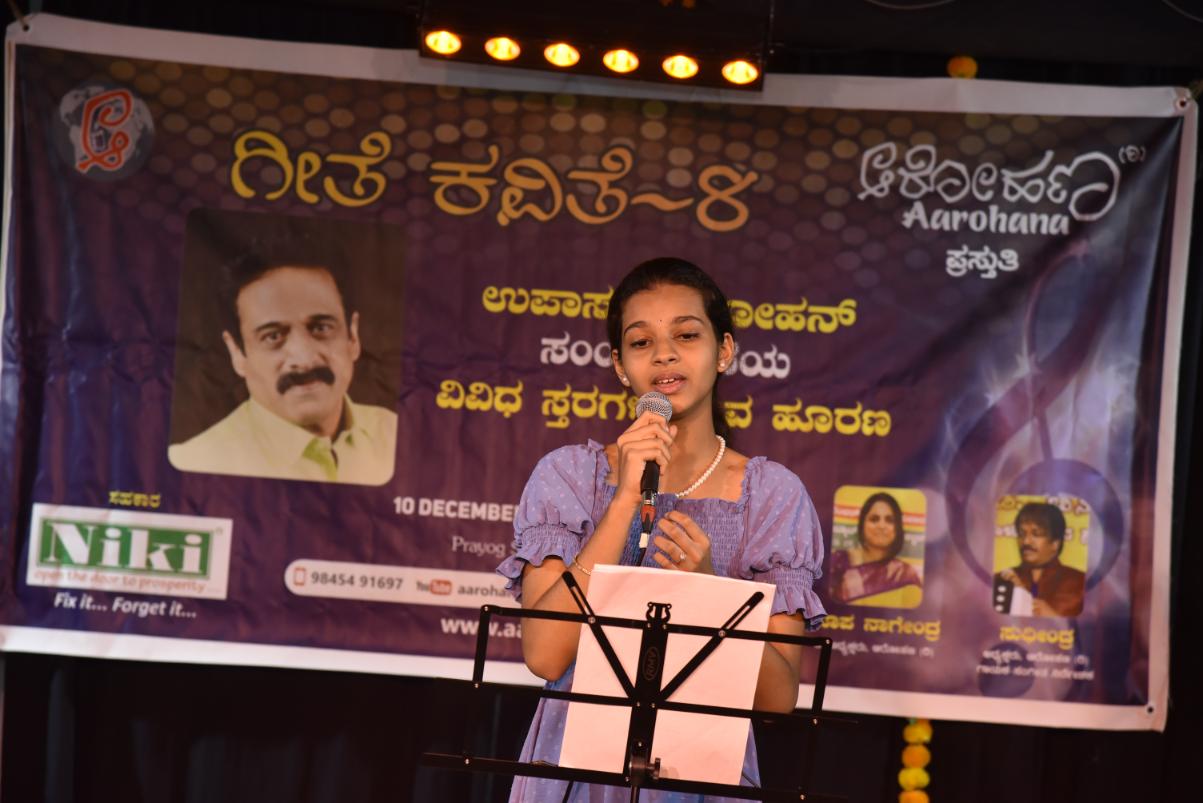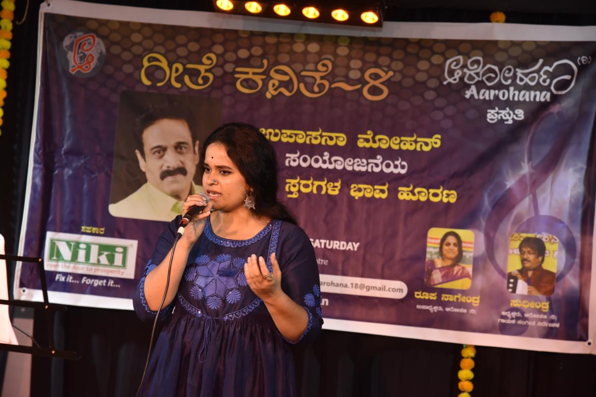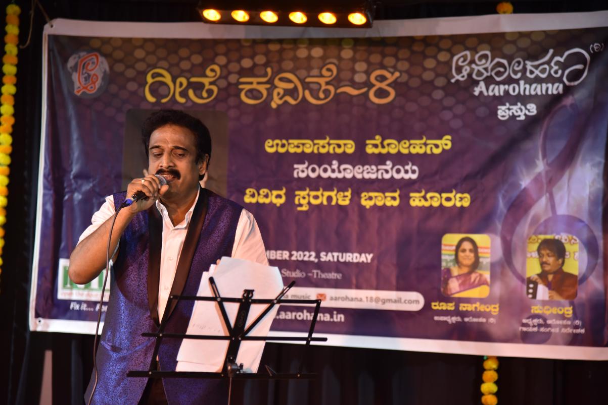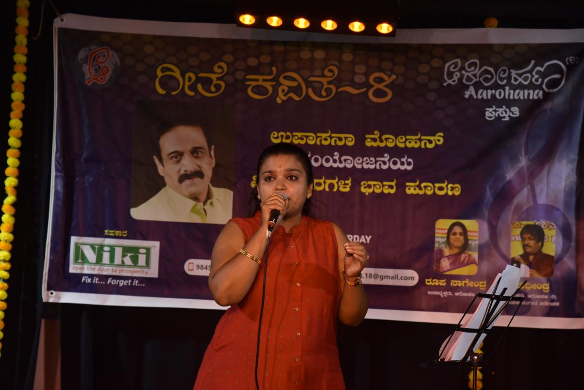 ಗೀತೆ ಕವಿತೆ – 8. ಅನೇಕ ಹೊಸ ಭಾವಗೀತೆಗಳನ್ನು, ಅನೇಕ ಗಾಯಕ ಗಾಯಕಿಯರನ್ನು ಸುಗಮ ಸಂಗೀತ ಕ್ಷೇತ್ರಕ್ಕೆ ಪರಿಚಯಿಸಿದ ಕೀರ್ತಿ, ಗಾಯಕಸಂಗೀತ ಸಂಯೋಜಕ, ಉಪಾಸನಾ ಮೋಹನ್ ಅವರಿಗೆ ಸಲ್ಲುತ್ತದೆ. ಅವರು ಸಂಗೀತ ನಿರ್ದೇಶನದ ಗೀತೆಗಳ ಗಾಯನದ ಕಾರ್ಯಕ್ರಮವನ್ನು, 10 ಡಿಸೆಂಬರ್ 2022 ರಂದು ಪ್ರಯೋಗ್ ಸ್ಟುಡಿಯೋದಲ್ಲಿ ಆಯೋಜಿಸಲಾಗಿತ್ತು
