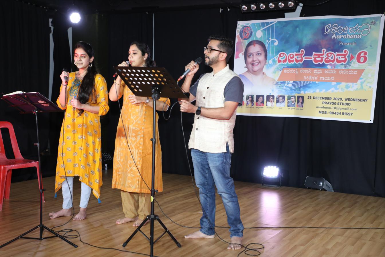Geethe Kavithe – 6 :  On 23-12-2020 Aarohana organized Geethe Kavithe – 6, at prayog studios. Ranjani Prabhu, who won the hearts of many literature lover with her writing, Aarohana team sang her songs. Actor – director Srinivasa Prabhu participated in the program.