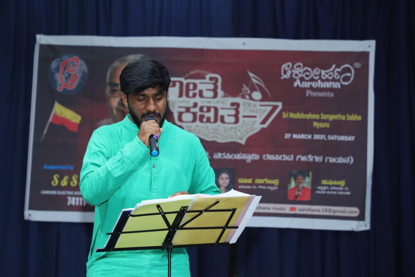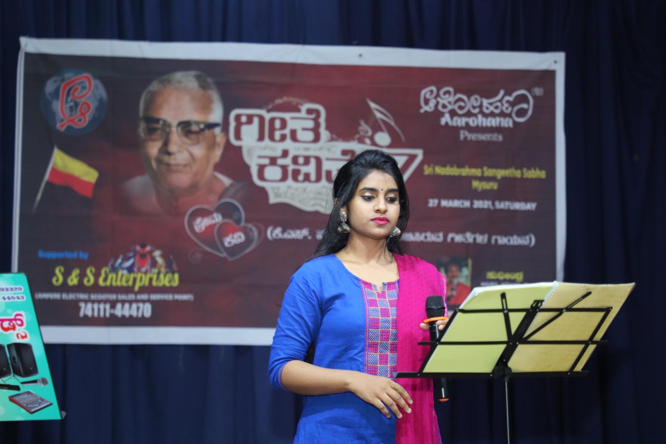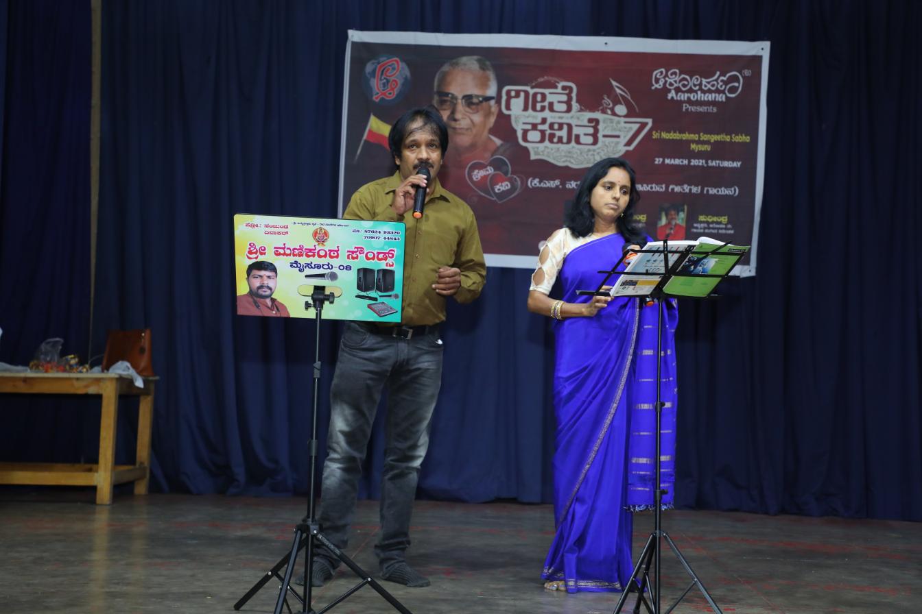 “Geete – Kavithe – 7” : Mysore Mallige – reminds us of the eternal love songs written by K. S. Narasimha Swamy. Geete – Kavithe 7, was organised at Naada Brahma Auditorium at Mysuru, on 27-03-2021. The poet’s granddaughter Dr. Mekhala Venkatesh graced the occasssion. Many singers from Mysuru sang songs and disciples of senior Dance Guru, Dr. Krupa Phadke, gave a dance performance for a song composed by K.S.Narasimha Swamy.