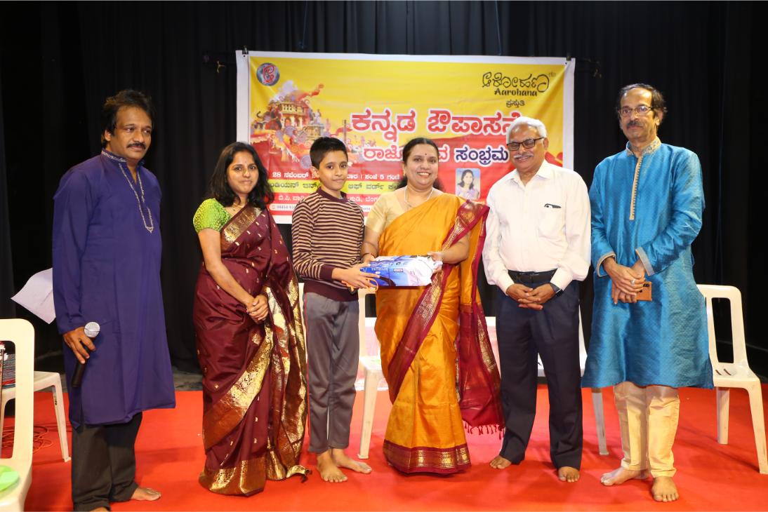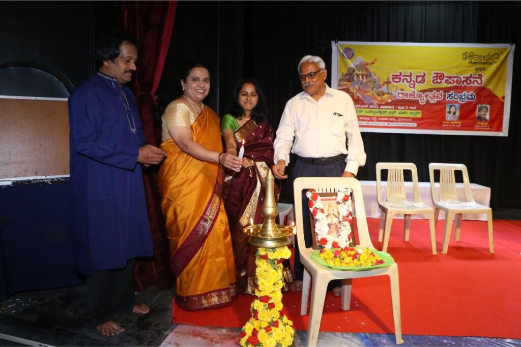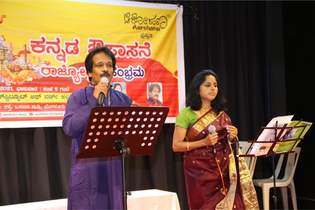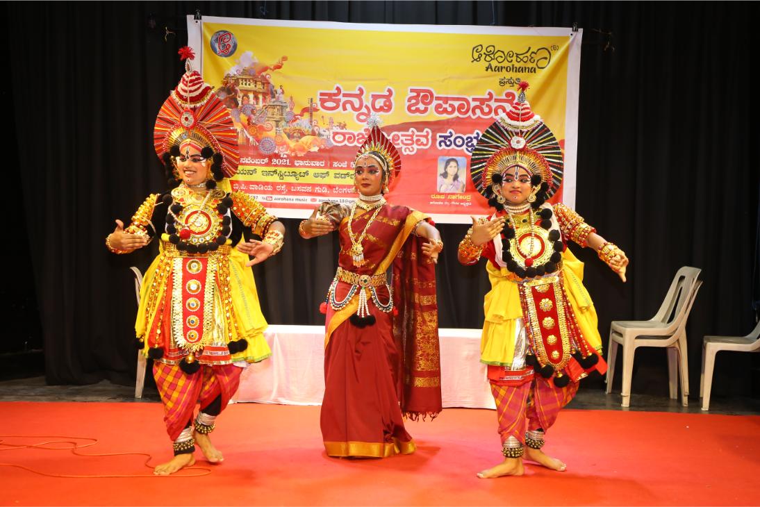 “Kannada Aupasane” : Kannada Rajyotsava celebrated on 28-11-2021, entitled “Kannada Aupasane”, at the Indian Institute of World Culture, BP Wadia Road. Dr. Mekhala Venkatesh, businessman Ranganatha Prasad participated. Kannada songs were presented in the program. Along with this, the children of Sristhi Kala team stepped into a folk song, the students practicing under the leadership of Srinivasa Sastana presented a Yakshagana episode