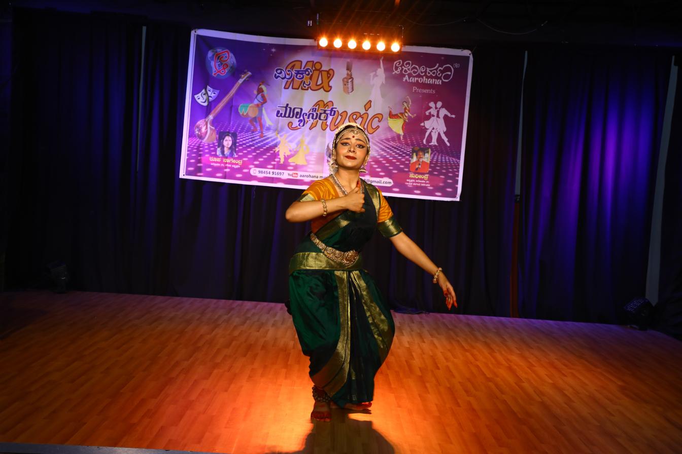 “Sammilana-Mix Music – 2” : A programme with no language barriers, Mix music intends to bring all art forms like music, lyrics, dance , orchestra and artists on a single stage. The second program of the monthly music program “Sammilana-Mix Music” initiated by Aarohana was organized on July 21, 2021 at Prayog Hall. Bharata Natyam performance was arranged by Vidushi Aditi Prakash along with singing in the program.